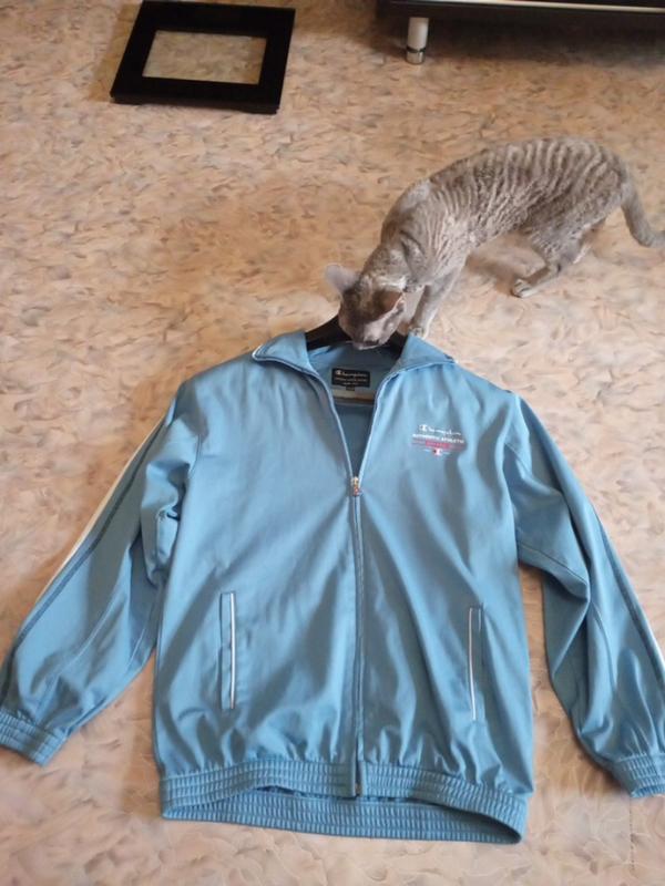Олимпийка с ломпасами на руковах. Очень красивый голубой цвет.