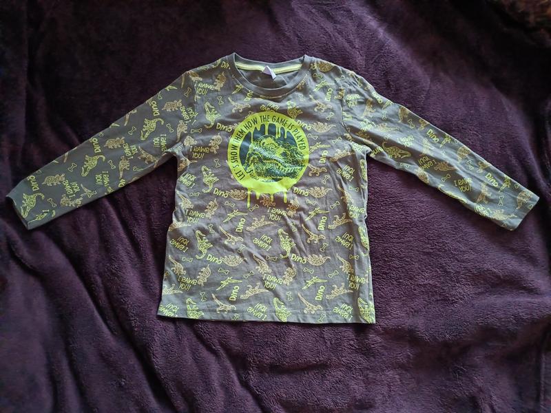 Кофта Динозавр. Ориентировочно на рост 116 см. Замеры на фото. Рисунок целый.