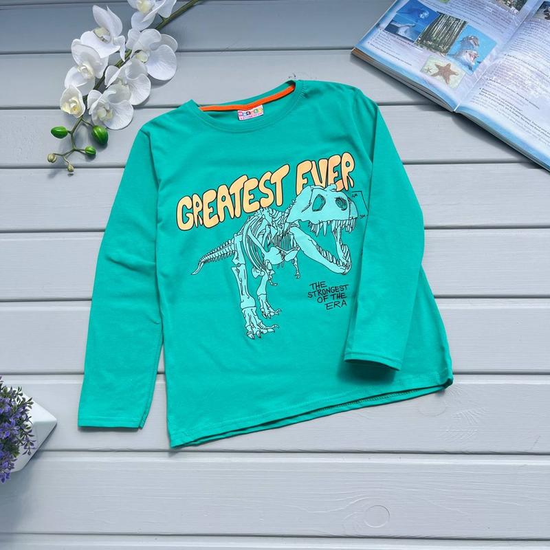 Реглан с длинным рукавом на мальчика с рисунком скелета динозавра. Производитель Турция 📐Замеры: (128-134) - дл.51 / пог. 39 /рук. 46 (134-140) - дл.52/ пог.39 /рук. 46 (140-146) - дл. 56/ пог. 40 /рук. 49 (146-152) - дл.58 / пог. 41 /рук. 51