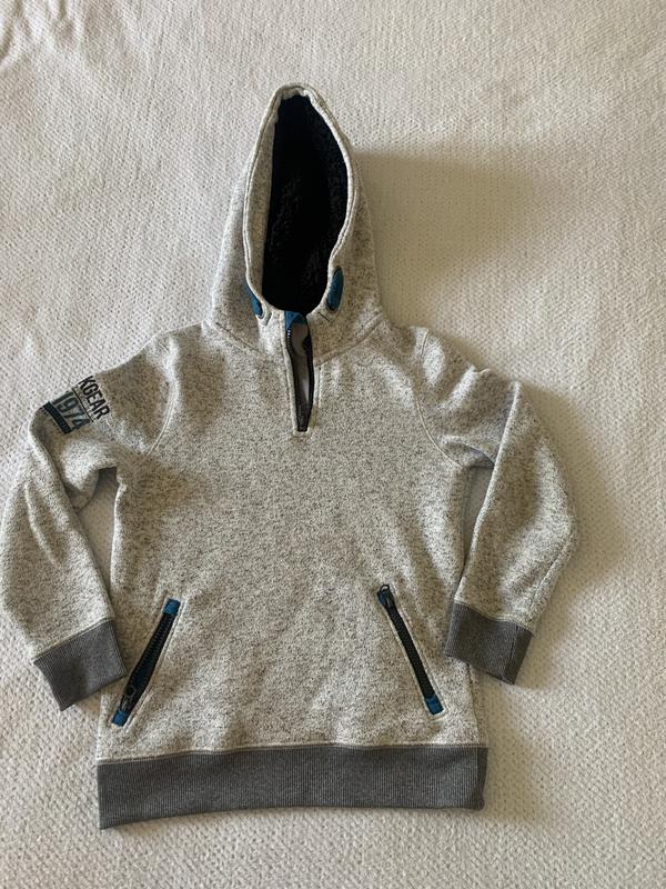 Утепленная кофта худи с меховым капюшоном и двумя карманами