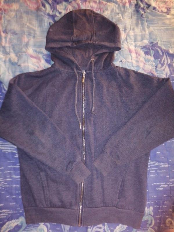 Темно синяя спортивная кофта на замке. В наличии 2 боковых кармана. Рукава и низ кофты на манжете. Не утепленная. Добротная фурнитура. Не новая, состояние хорошое. Замеры: длина изделия по спинке от шеи 57 см, плечи 58 см, низ до манжета 41.5 см, манжет 40 см, длина рукава от шеи 63 см, внутренний шов 42.5 см.