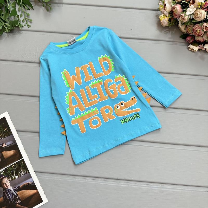 Реглан крокодил голубой. Рисунок накат и есть всавки по бокам.Ткань трикотаж, красиво тянется, не линяет. Тканина 95% бавовна, 5% еластан. Производитель Турция 📐Замеры: 86 - длин 35/ полуобхив. 24/рук. 28 92 - длин 36/ полуобхив. 25/рук. 30 98 - длиж 37/ полуобхв.27/рук.32 104 - длин 40 / полуобхв. 28/рук.33