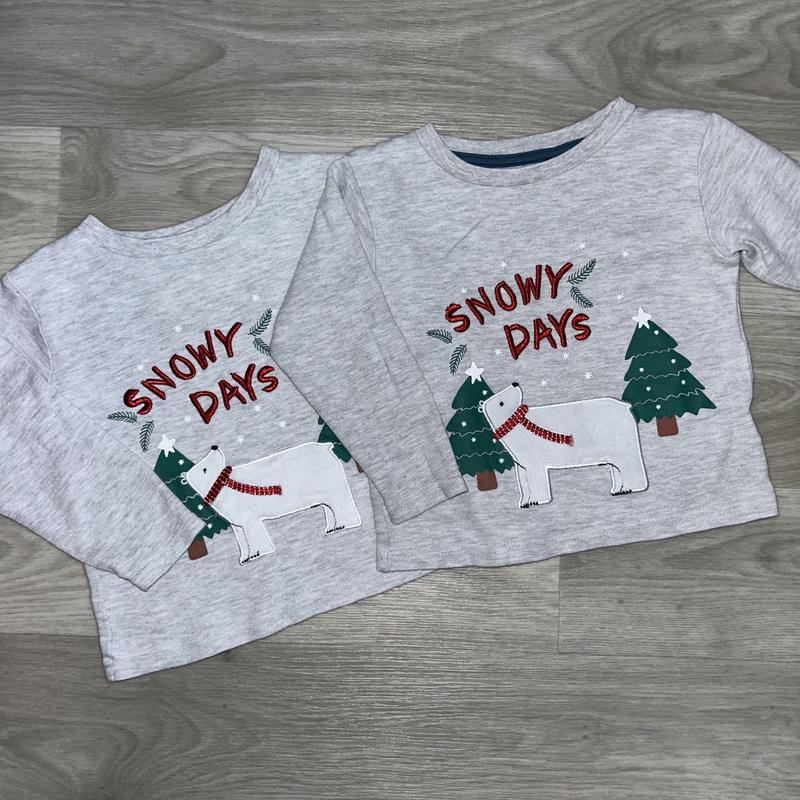 Серая кофточка с новогодним рисунком-аппликацией Мягкая ткань, вышивка защищена дополнительно внутри без дефектов Замеры 18-24 Длина по спине 29 Пог 30 Плечи 26 Рукав 28 24-36 м Длина по спине 29 Пог 31 Плечи 27 Рукав 28 98% хлопок 2% полиэтер