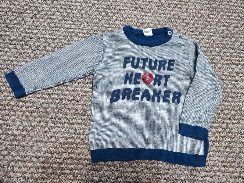 Тоненький свитерик с классной надписью.На плече 2 пуговицы. Замеры: длина 34.5 см. ширина 29 см. плечи 24 см. рукав от плеча 28 см.