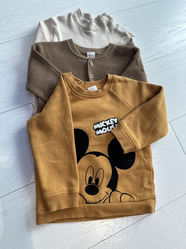Кофточка Микки H&m 150 грн Кофточка вязаная H&M 150 грн Гольфик LC Wikiki 100 грн Размер 12-18 мес. ( 80-86 ) Все вещи в хорошем состоянии, не заношены.