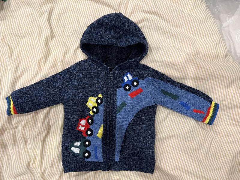 Кофта на мальчика в очень хорошем состоянии. Внутри утеплена мягким длинным ворсом, рукава без ворса – то есть эффект безрукавки. Мягкая и очень теплая. Не «кусает». Ваш ребенок полюбит эту кофточку. Размер 86 (1-1.5роки).