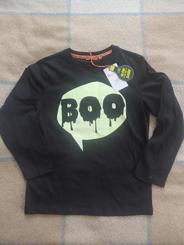 Лонгслив для мальчика, подойдет на праздник Halloween 🎃 Новый, с этикеткой. Итальянская фирма Original marines. Размер 140, на возраст 9-10 лет. Замеры: ширина плечей - 35 см. длина рукава - 49 см. длина по спине - 55 см. Некоторые элементы рисунков светятся в темноте.
