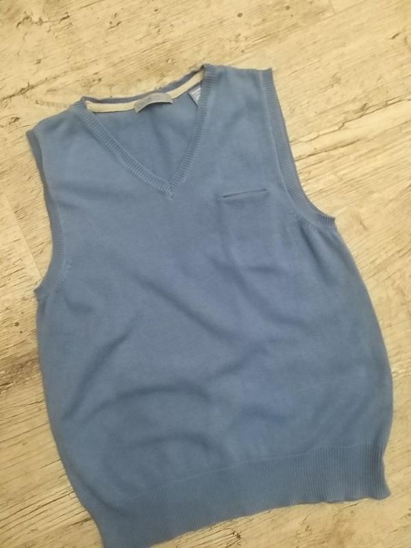 Жилетка трикотажная в идеальном состоянии. Декорирована кармашком на груди. Длина 45см, ширина под руками 33см.