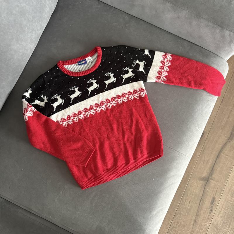 Класна новорічна кофта фірми Lupilu. На вік 4-6 років. Довжина 47 см, плечі 29 см, рукав 43 см