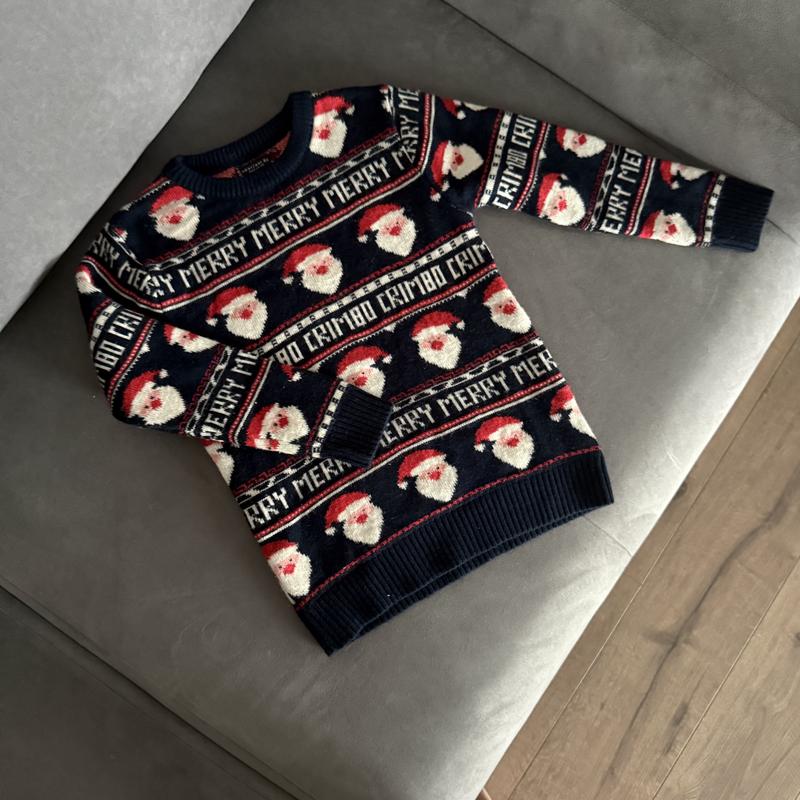 Класна новорічна кофта фірми next. На вік 6-7 роки. Довжина 53,5 см, плечі 33 см, рукав 45 см.