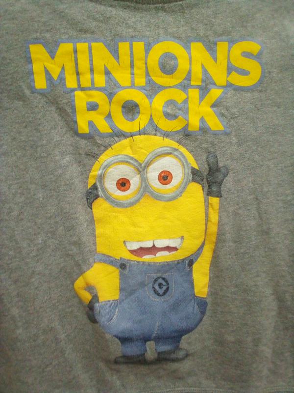 Кофта міньйони в ідеальному стані, за винятком наклейки, потрісалася, видно на фото. Довжина від плеча 47. Довжина рукава від плеча 43. ПОГ 39.