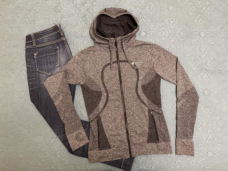 Спортивная кофта с капюшоном и прорезями для пальцев. Рефлективные лого и полосы. Полноценные карманы на молнии. Бренд endurance Размер идет на S/M, хотя указан L мужской. Замеры: Длина- 62 см Полуобхват груди 45 см, тянется до 52 см Длина рукава - 65 см Стан идеален.