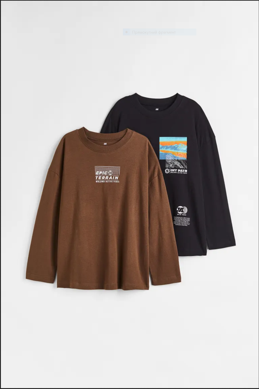 💥ВАЖЛИВО 💥 ☑️«БЕЗЕЧНАЯ ОПЛАТА»-ТИЛЬКИ «ОПЛАТА ПРОДАВСТВИЯ НА КАРТА» ☑️ПРЕДУПРЕМЛЛЕНИЯМИ УТОЧИТЕ ОБ НАЯВНОСТЬ ТОВАРА. ☑️ «ROZETKA”-НА ДАННОЕ ВРЕМЯ НЕ ОТПРАВЛЯЮ. Регланы с длинными рукавами из мягкого хлопкового джерси с набивным рисунком, с круглым ребристым вырезом и приспущенными плечами. Бренд H&M. Размеры 146-152 💳 Цена - 580 грн./2 шт