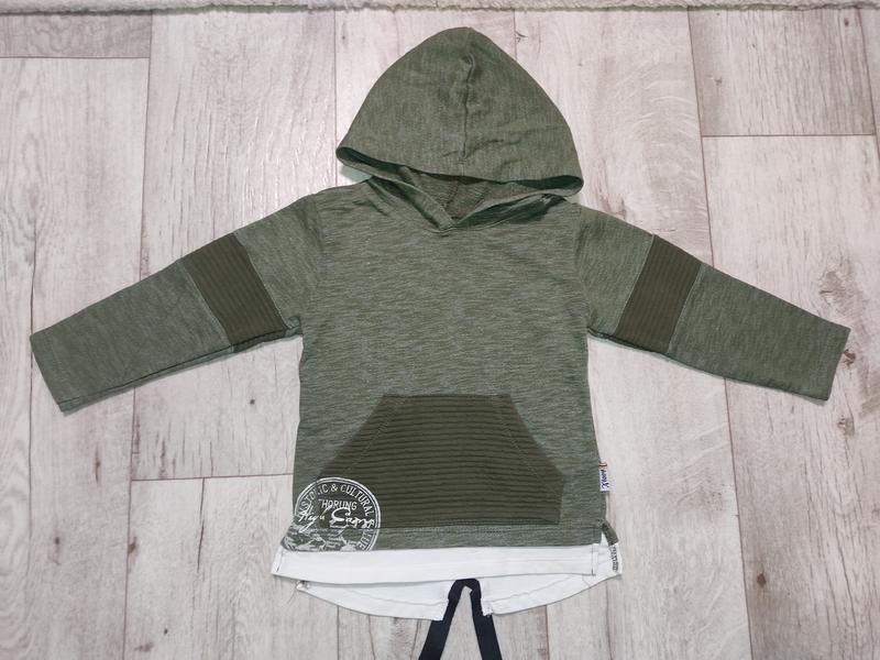 Кофта в идеальном состоянии, большемерит. Легкая, сзади удлиненная, выглядит стильно. Обращайте внимание на замеры: длина спереди 40, сзади 42-43 см, плечи 29, рукав 31см. Цвет хаки, камера засветила, на третьем фото лучше виден цвет.