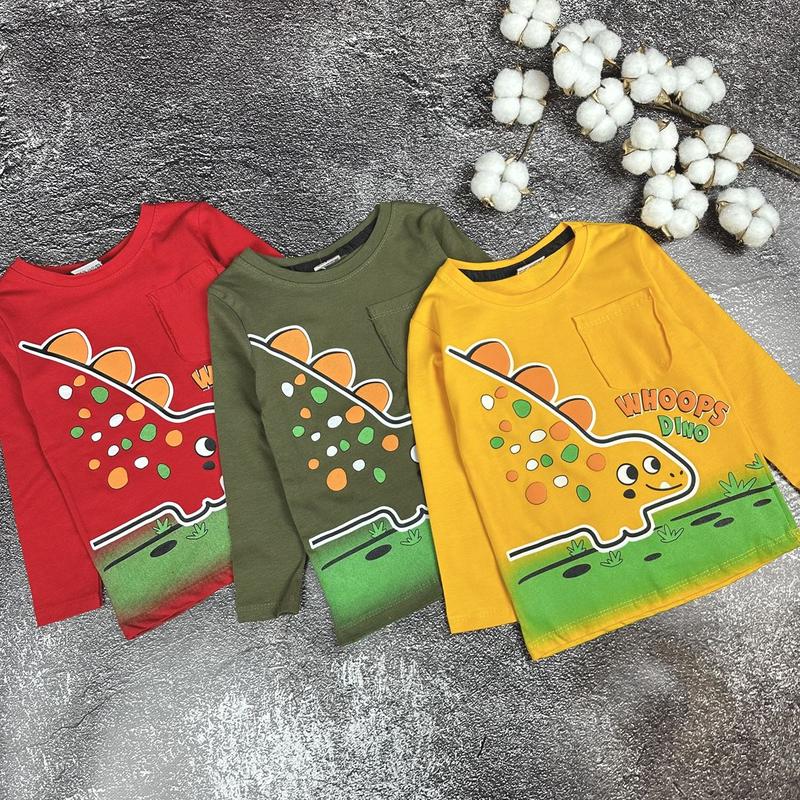 🦋Реглан Дино. Рисунок спереди и сзади. Ткань очень приятная к телу. Хорошо подойдет в садик или на каждый день. Рисунок - накат. Производитель Турция. 📐Замеры: 86 - длин. 36/полуобхват 25/ рук. 30 92 - длин. 38/полуобхват 26/ рук. 32 98 - длин. 39/полуобхват 27/ рук. 33 104 - длин. 41/полуобхват 29/ рук. 36