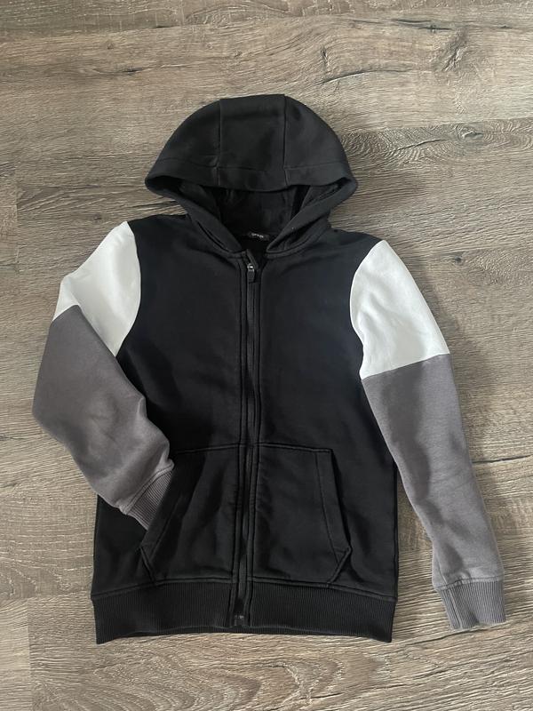 Утеплений худі. Стан дуже хороший. Груди 39 см, довжина 54 см, рукав+плече 57 см. На бірці 9-10 (як на мене - маломірить)