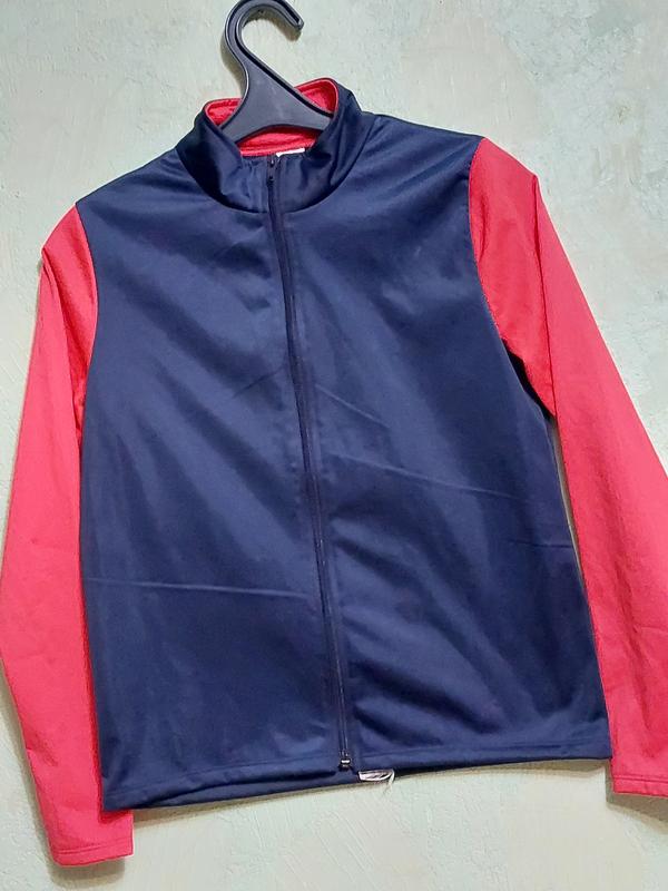 легкая спортивная кофта олимпийка в идеальном состоянии, без карманов, длина по спинке 53см, пог 44см, ширина плеч 33см, длина рукава от плеча 57см бирки с составом и размером нет , ориентируйтесь на замеры