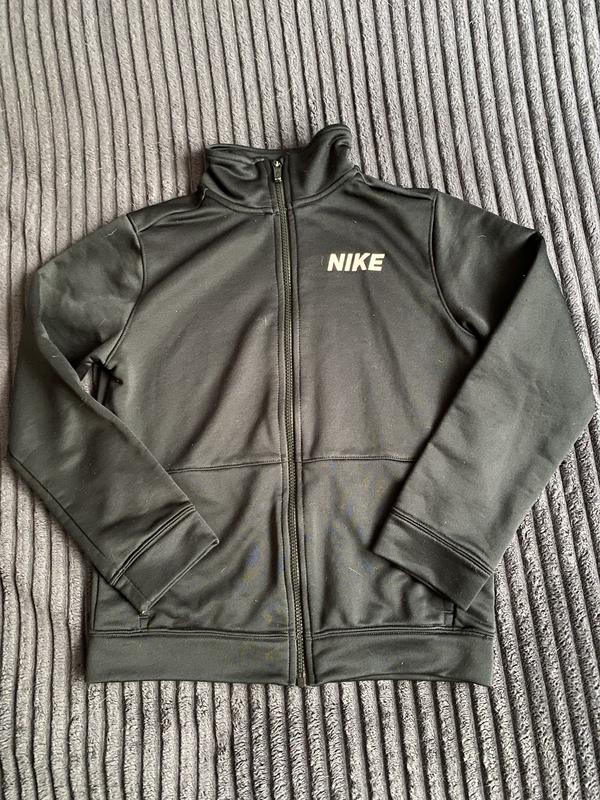 Спортивна кофта Nike,на 10-12 років,зріст 137-147 Заміри: Плечі 36 Ног 44 Рукав 52 Довжина 54 Є незначні недоліки показані на останніх фото(замочок,та на рукаві краплина білого кольору)