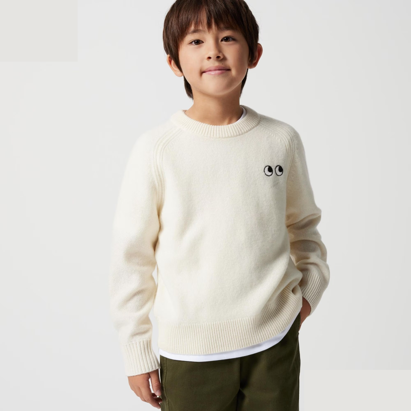 Состав: 100% шерсть PREMIUM LAMBSWOOL CREW NECK LONG SLEEVE SWEATER модель унисекс изготовлен из 100% премиальной шерсти мягкий, теплый и легкий слегка закругленный, основной крой простой дизайн сочетается с любым низом на левой стороне груди присутствует фирменная вышивка глаз и рта вышивка на правом крае выглядит как вышитая вручную премиальный свитер с веселым дизайном