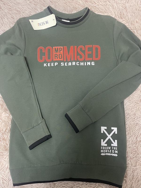 Лонгслив с объемным принтом. Размер 152. Цвет хаки.