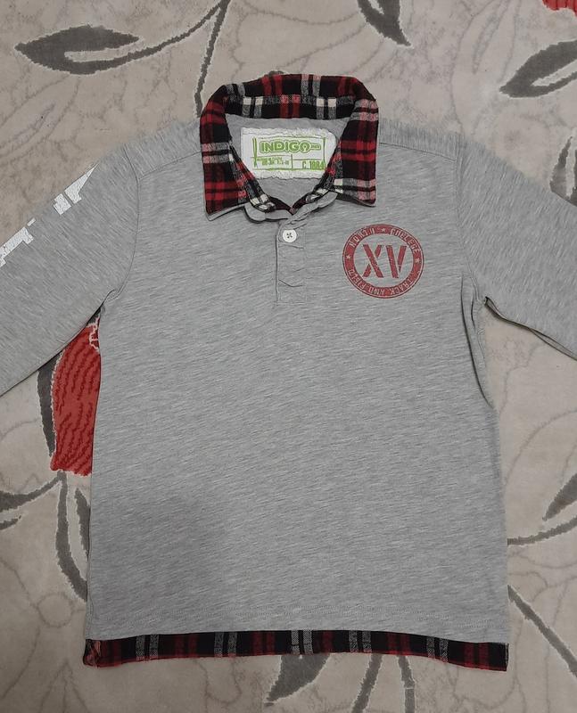 # 304 Удобный лонгслив для мальчика. С имитацией рубашки. Состояние очень хорошее. На возраст 9-10 лет, рост до 140 см. Ширина плечей 37 см Ширина груди 42 см Длина рукава 48 см Длина 57 см.