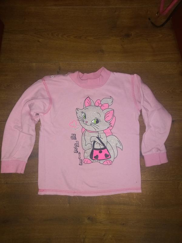 Кофта байкова на дівченку 5-6років.Розового коліру.рукава на манжетах. Низ прямий.Тепленька на осінь та весну.Е декілька крапочек,но їх не видно. Розмір: Рукав 31см. Довжина спинки 36см. Ширина 31см.