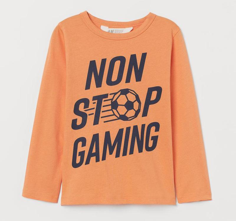 Детская кофта лонгслив из хлопкового трикотажа с длинным рукавом, с набивным рисунком. Рельефная трикотажная резинка по горловине. H&M р.110-116 - 4-6 лет: рукав от плеча 40, длина 45, ПОГ 33