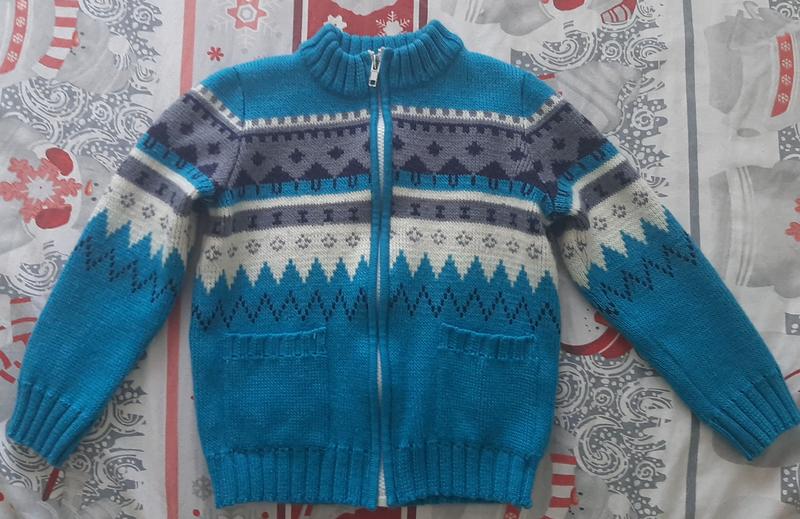 Продам теплу дитячу кофту 104р. Вона була зроблена в ательє під замовлення, машинне в'язання. Склал акрил/вовна, зовсім не колеться. Можна піддягати під зимоаий одяг