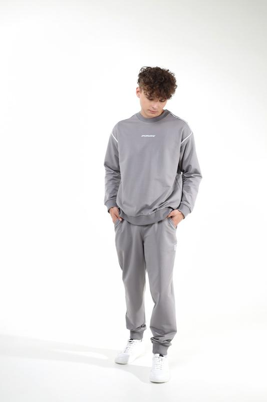 ЗРАЗКИ, ЦІНУ ЗНИЖЕНО ДЖЕМПЕР "ФОРВАРД" 164розмір Тканина: двонитка Колір: сірий, синій Склад: 95% бавовна, 5% еластан, щільність 240г/м2 Примітка: легкий оверсайз, декоративний кант, друк DTF