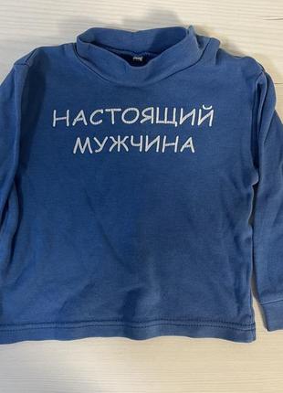 Кофта для мальчика синего цвета, с надписью. На манжеті є пляма , на фото видно