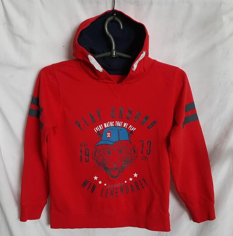 Худи ярко-красного цвета В отличном состоянии, без нюансов Гладкий трикотаж 100 % хлопок, без начеса Размер на 8/9 лет (128/134) ширина по груди – 41, длина рукава – 45, длина по спинке – 46