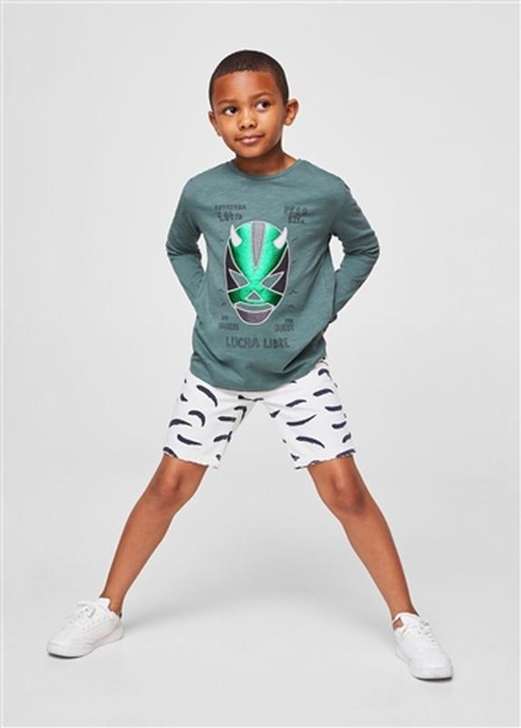 Трикотажний реглан на хлопчика з цікавою, яскравою аплікацією. Тканина натуральна, приємна на дотик. Розмір вказано 4-5 років Рукав 37см Плечі 30см Довжина 44,5см Ширина пів рукавами 33,5см