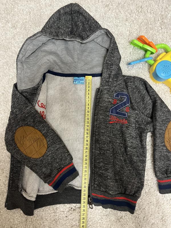 Кофта для мальчика в хорошем состоянии, легкая, тёплая, на легком флисе, на рукавах стильные латочки, размер 86-92, 2-3 года, замеры на фото