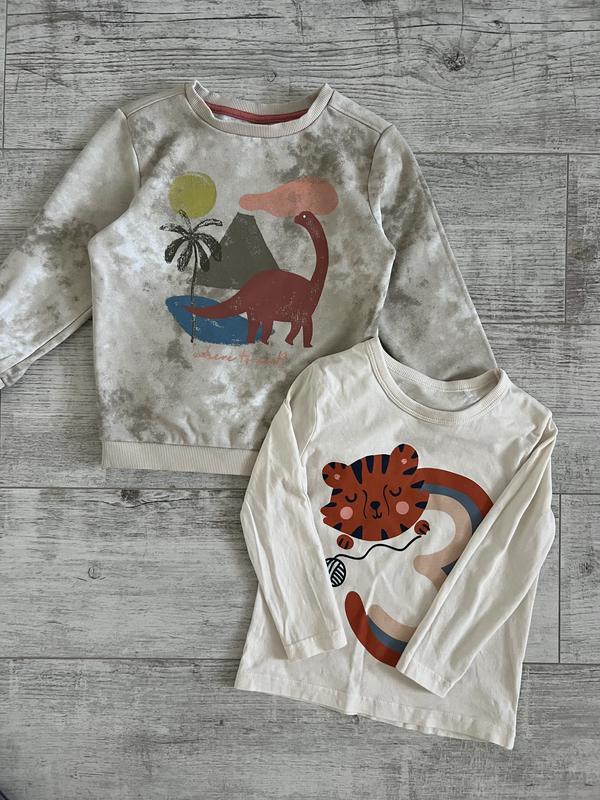 Продаю комплектом 3/4 рочки ✅Світшот на флісі , без нюансів Довжина 45 см, ширина 37 см, рукав від горловини 43 ✅Реглан з цифрою 3 стан ідеальний😻 Довжина 43 см, ширина 33 см, рукав від горловини 43 см ЦІНА ВКАЗАНА ЗА НАБІР