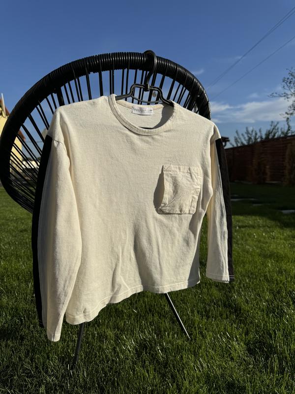 Реглан Zara 9y (134 cm) Реглан с надписью молочный Без пятен Замеры: Длина от плеча 45см Длина от шеи 48 см Рукав 40+14 см плечо Ширина под руками 43 см