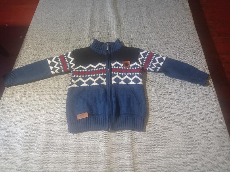 теплая вязаная кофта на замке, длина 42 см, длина рукава от горловины 42 см