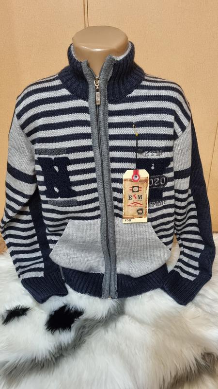 Кофта на хлопчика. Размер: 140-146. Состав: 60% акрил, 10% шерсть, 30% полиамид.