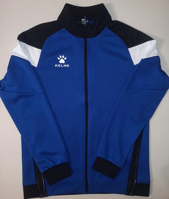 Стильна дитяча олімпійка Kelme на блискавці. Високоякісна дихаюча тканина, міцна і стійка до зносу. Дуже м'яка на дотик, швидке висихання і без зморшок, з двома блискавками на бокових кишенях. Розмір XS/14. Ширина олімпійки 49,5 см, довжина рукава від горловини 72 см, довжина 70,5 см. Матеріал: віскоза, нейлон, спандекс
