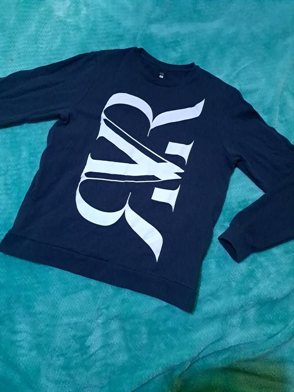 Теплая кофта, темно синего цвета, с надписью спереди. Состояние новой.