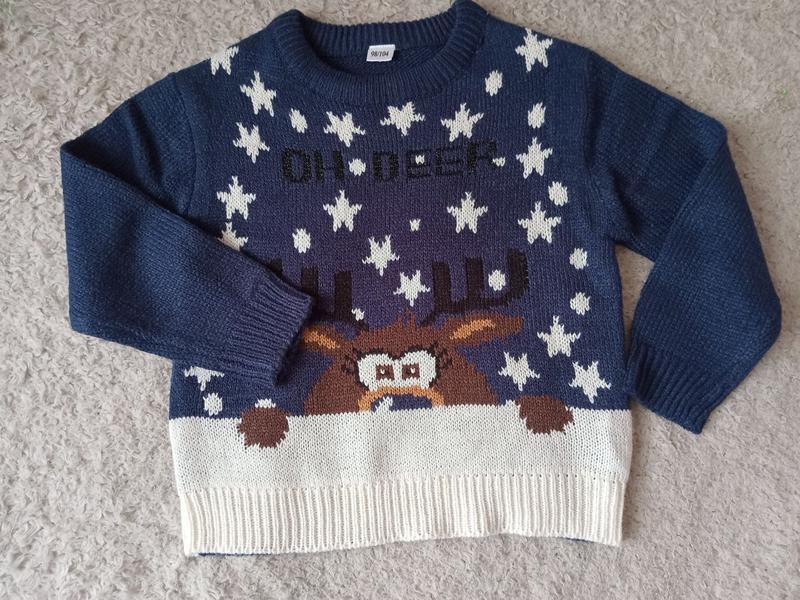 Продам новогоднюю кофту для мальчика р.98-104 нова, без етикетки Замеры длина 41см ПОГ 34см рукав 35см