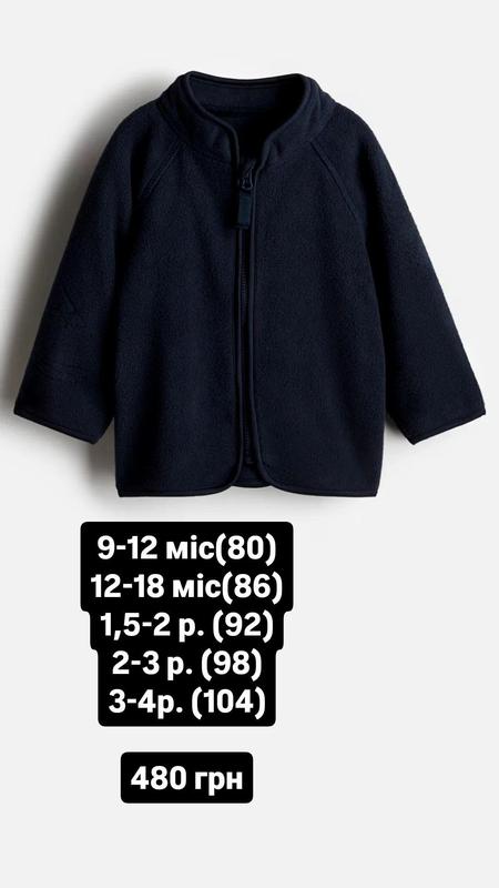 флісова кофтина від hm на блискавці. 9-12 міс(80)проданий 12-18 міс(86) 18-24 міс (92)проданий 2-3 р. (98) 3-4р. (104) проданий 480 грн