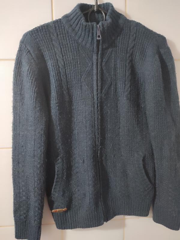 Теплая кофта на молнии для мальчика 8-12 лет. Рост 140 -158 см. Машинная вязка,шерсть. Есть карманы, горло стойка. Цвет синий темно, искажает камера. Замеры длина 63см, ширина 49см, рукав от горла 69см. Пересылаю.