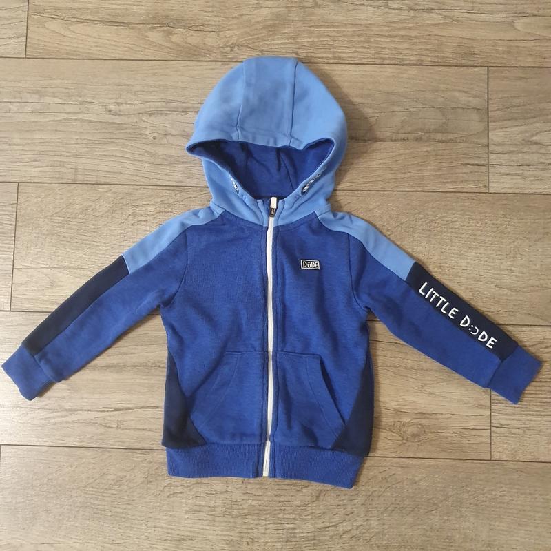 Спортивная кофта на молнии. Плотная, без утепления. В идеальном состоянии, почти не носил. Размер 104. Замеры: ширина 34см, длина 39см, рукав от горловины 43см, от подмышки 27,5см. Дополнительные фото и замеры сделает по мере необходимости.