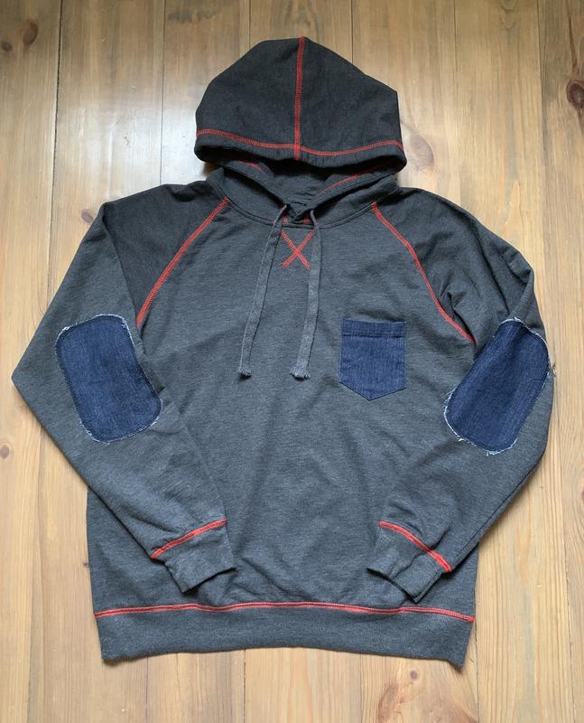 Кофта худі на 164-170 р. Ціна 180 грн. Стан чудовий. Джинсові нашивки на ліктях і кишенька так і були. Двонитка, без утеплення. Катишків немає. Заміри ПОГ 56 см Довжина 68 см Рукав від горловини 73 см