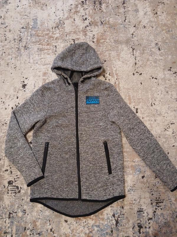 Теплая кофточка с капишоном,стан хорош но присутствуют микрокаты(ост.фото) Длина кофты спереди-52см, сзади-58см. Ширина-38-38,5см.Рукав-52см.