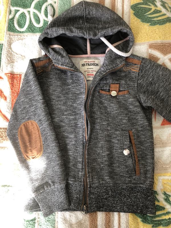 Стильна тепла кофта з капюшоном Практична та зручна кофта сірого кольору з капюшоном. Виконана з щільного матеріалу, добре тримає форму та підходить для прохолодної погоди. Оригінальні коричневі вставки й налокітники додають стильного вигляду. Застібається на блискавку, є кишеня на кнопці. Бренд: NH Fashion Колір: сірий Матеріал: щільний текстиль Стан: дуже хороший Сезон: весна, осінь Особливості: капюшон, блискавка, декоративні вставки, налокітники Зручно для щоденного носіння, прогулянок та школи. 📦 Швидка відправка 📩 Пишіть — надам заміри та додаткові фото за потреби.