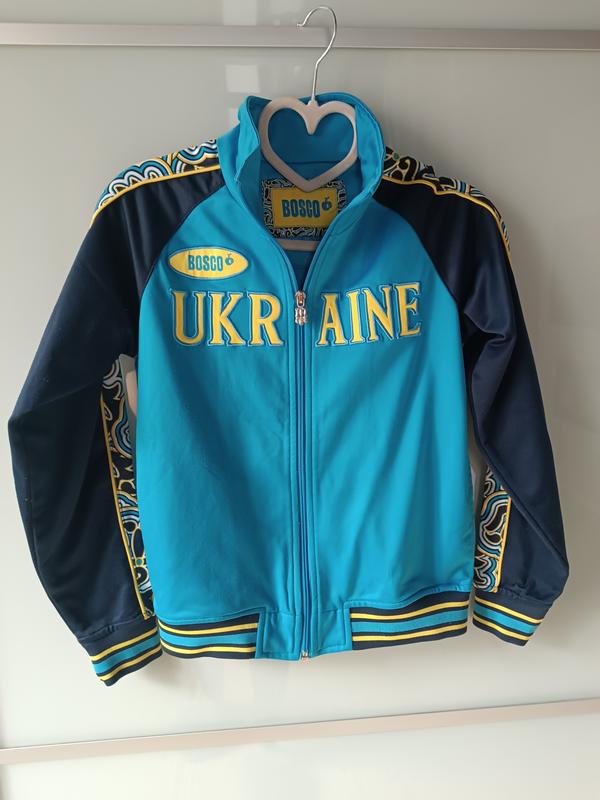 очень красивая кофта с национальным принтом ( спортивная сборная Украины). Длина 51 пог 42 рукав 63 полностью