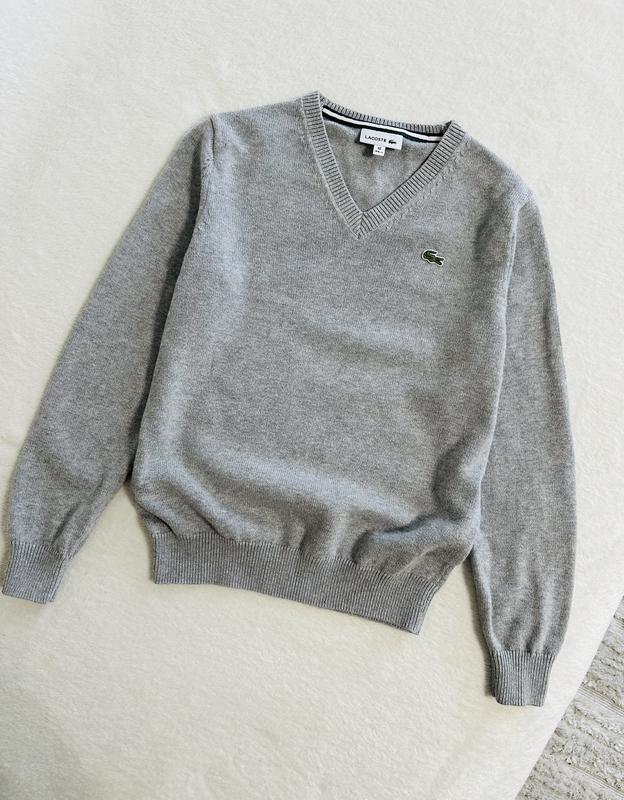 Базова сіра кофта Lacoste Розмір 10 на 140см По грудей 41см Рукав 59см-49см Довжина 51см 70% котон 30% лана