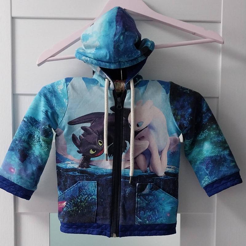 Пригодна, в хорошем состоянии, на молнии с двумя карманами, капюшоном и ярким рисунком. Замеры: плечи 25см, грудная 31см, длина рукава 31см, длина 37см.