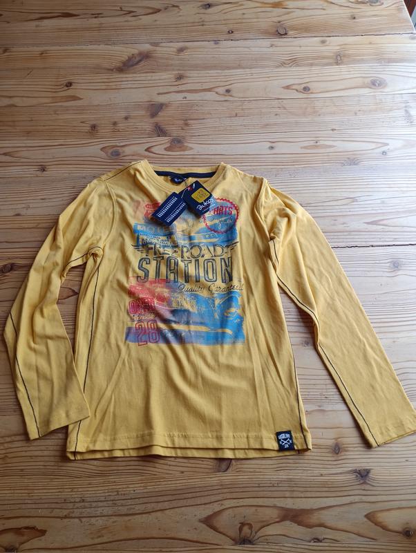 Желтая футболка с длинным рукавом нового итальянского бренда на мальчика на рост 146 см.Замеры:плечи 36 см, пог 40 см, длина рукава 56 см, длина кофты 56 см